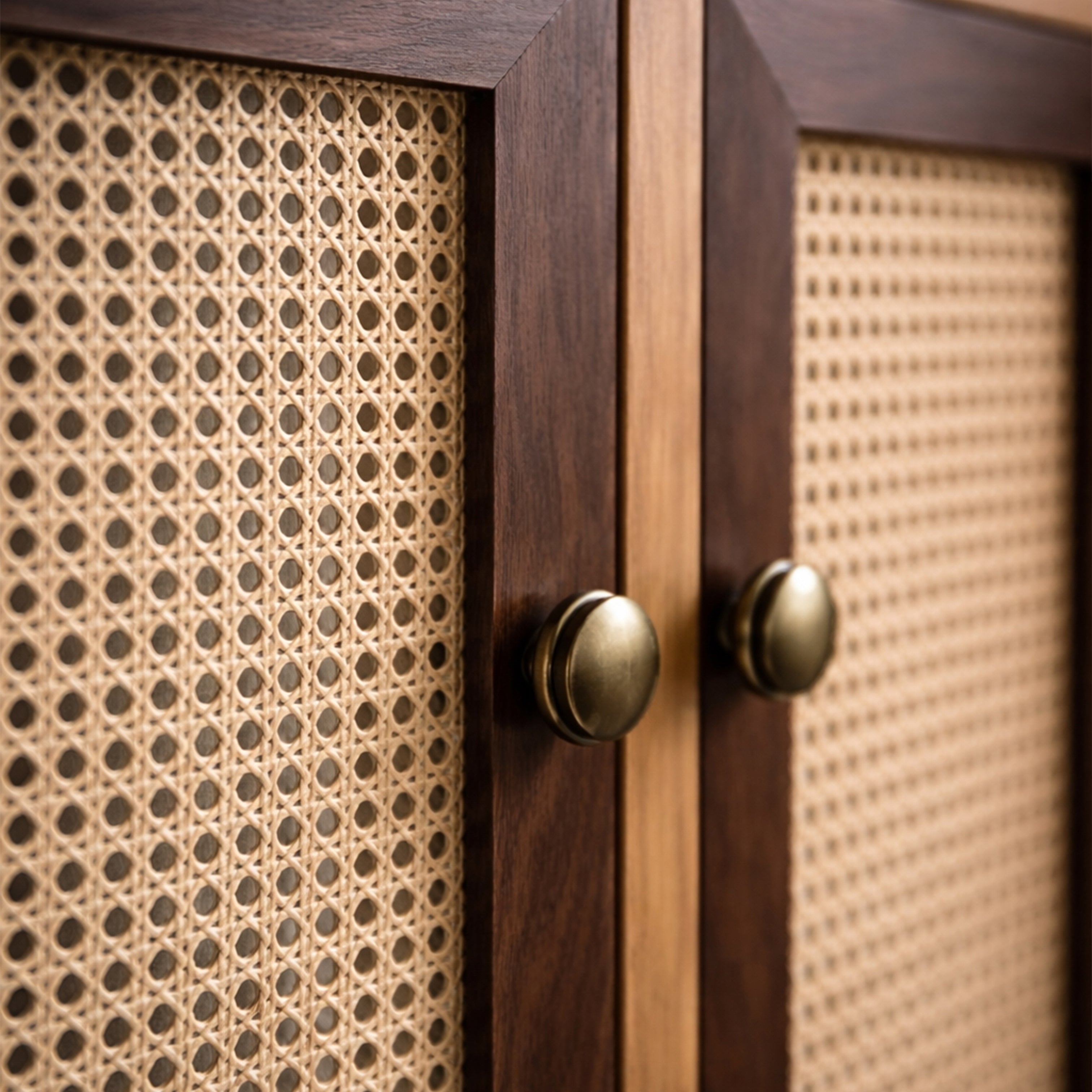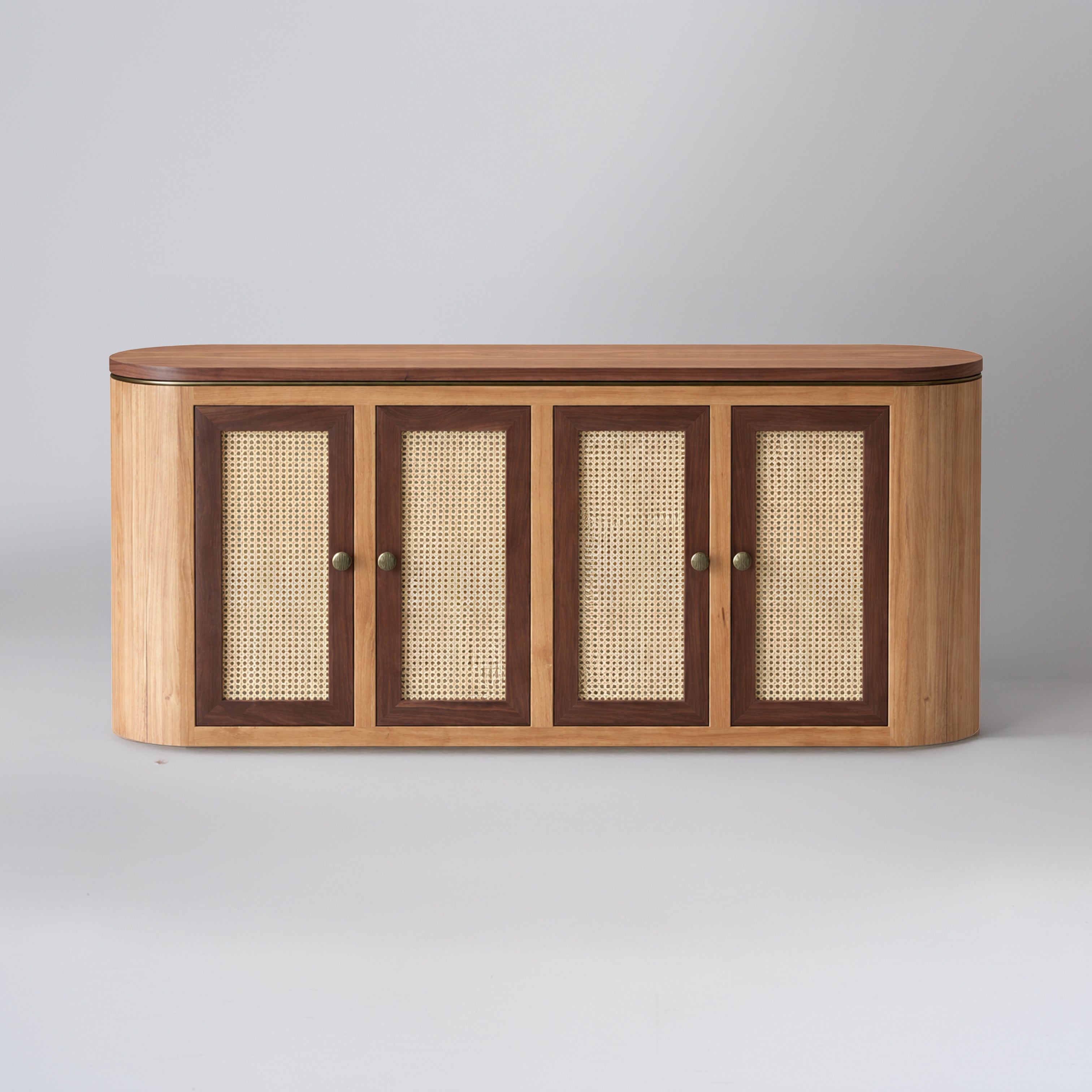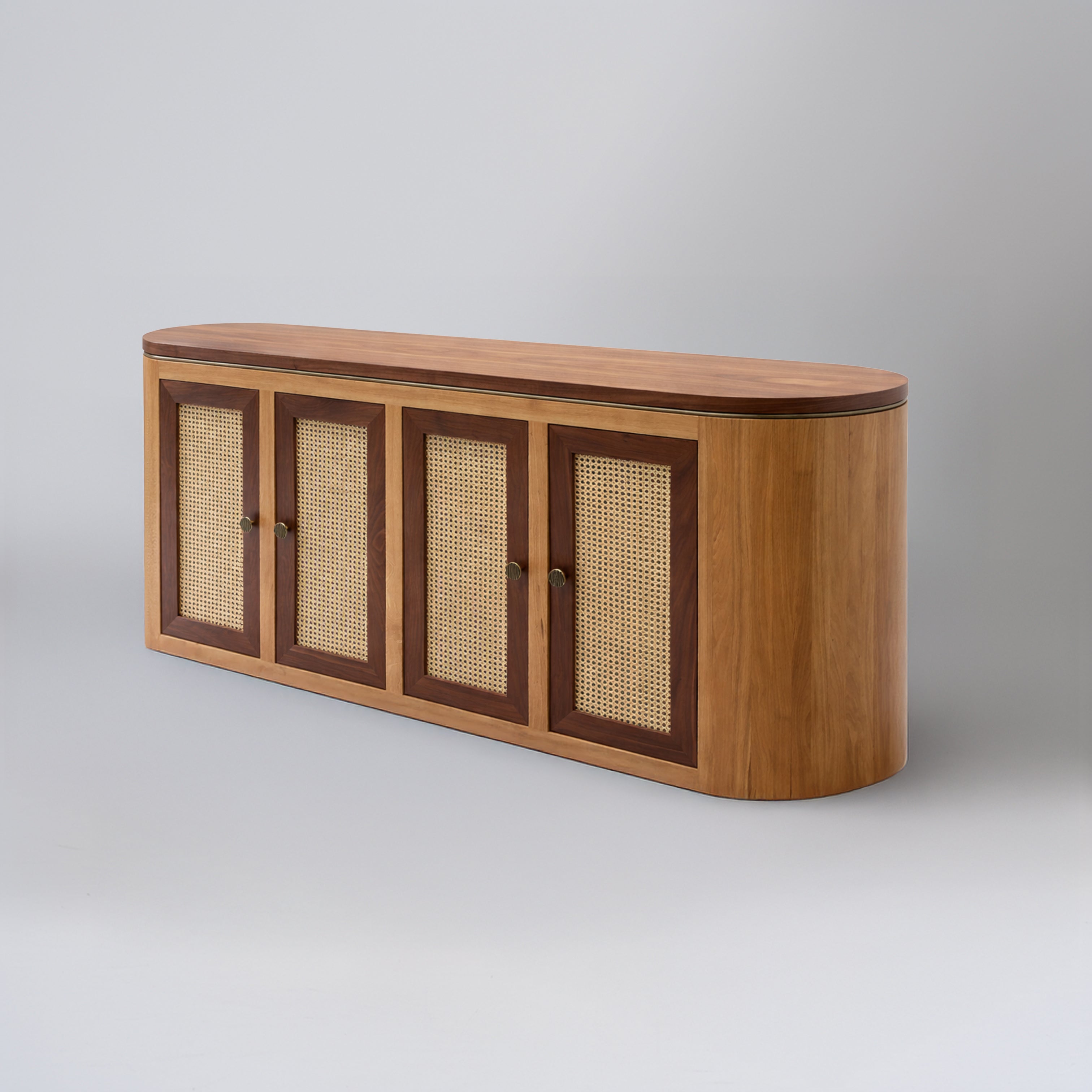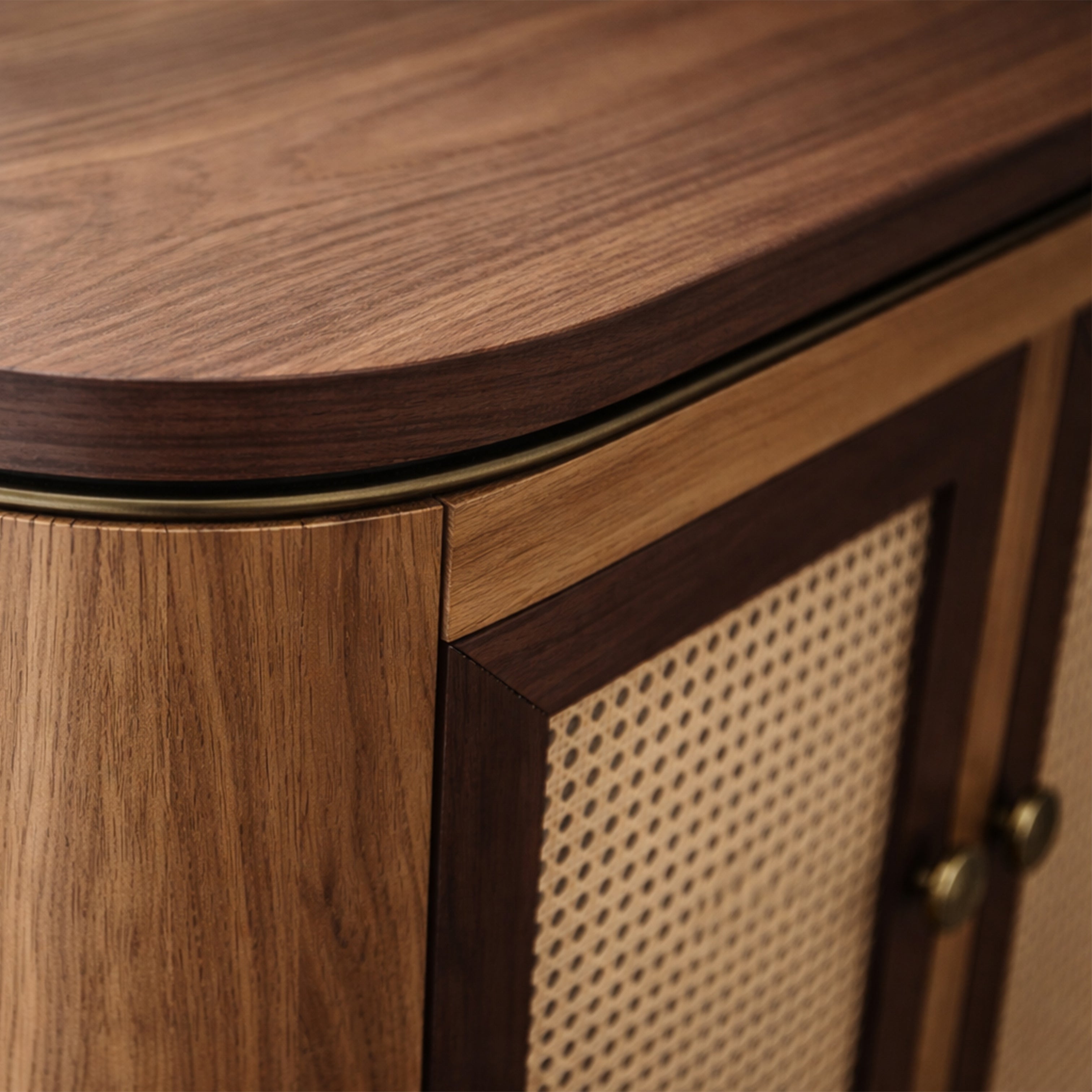 Matière : chêne massif, plateau en noyer, cannage, détails en laiton
